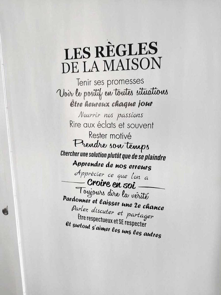 L’application de l’autocollant est simple. Si votre pièce a été repeinte récemment, je vous conseille d’attendre deux semaines avant de le poser. Pour facilité d’enlever le vinyle, vous pouvez le chauffer un peu au sèche-cheveux.