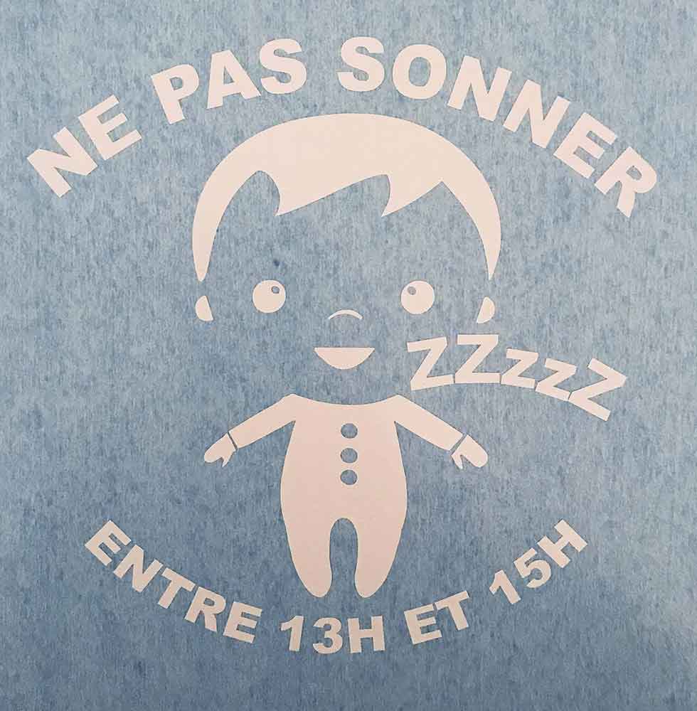 Autocollant pour porte “Ne pas sonner enfant fait dodo”. Il peut être personnalisé, pour cela laisser moi une note lors de la commande.