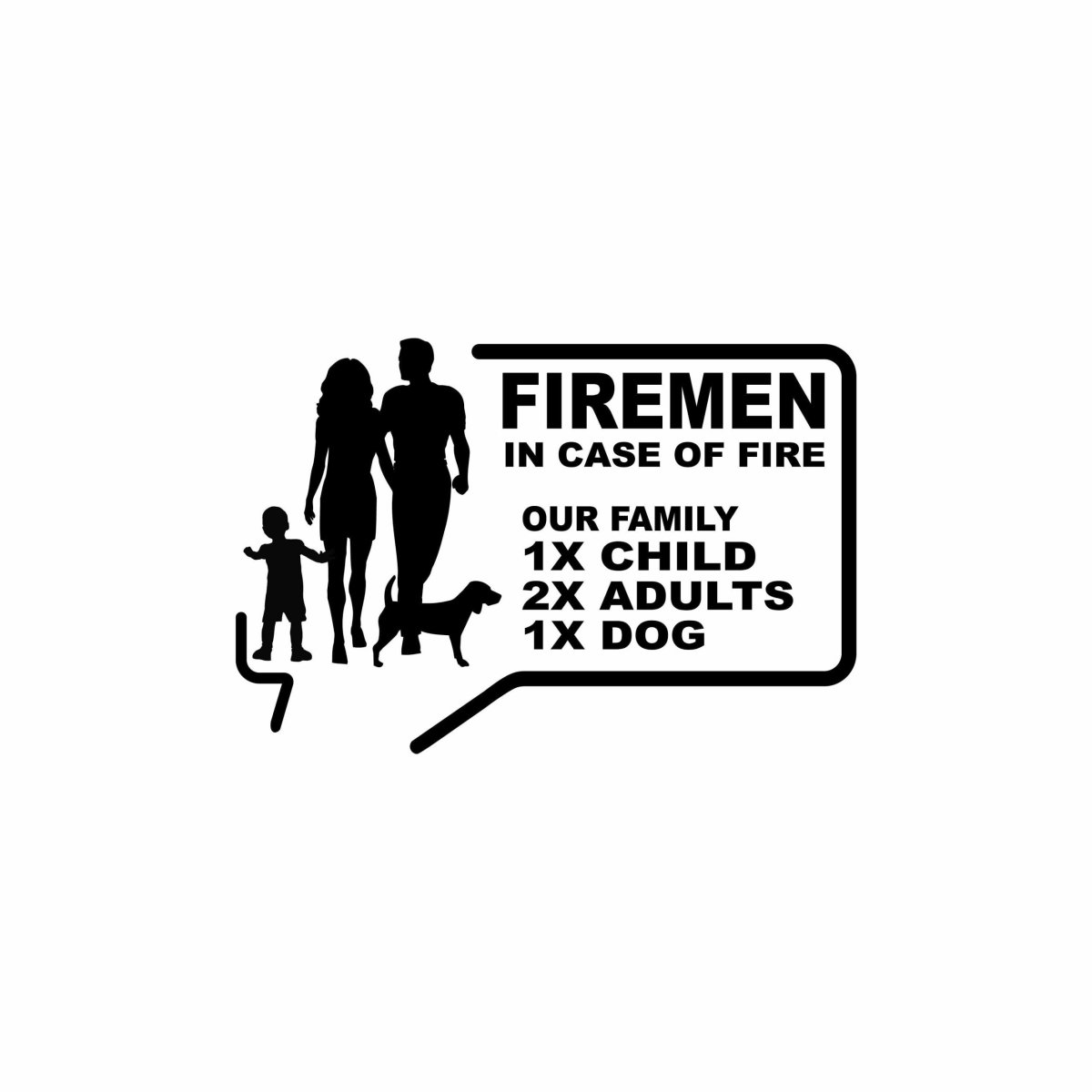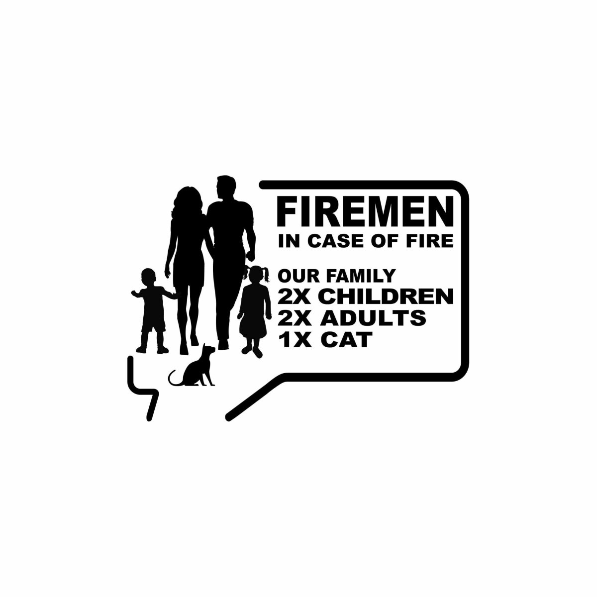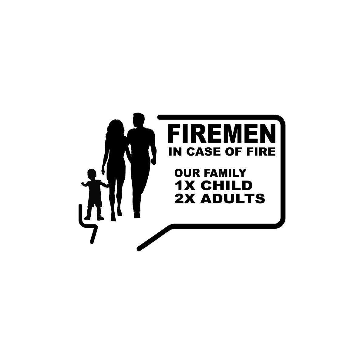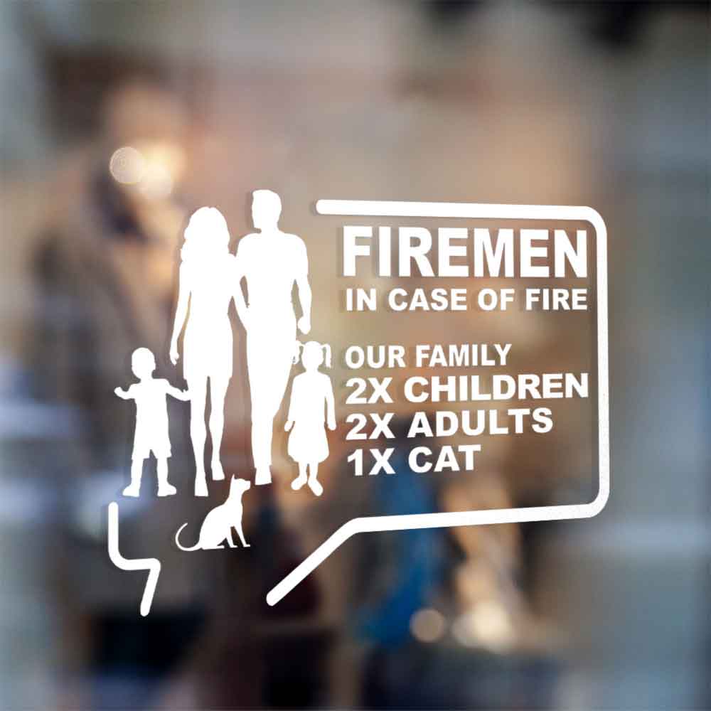 Firemen sticker in case of fire our family, baby, adults, chilrdren